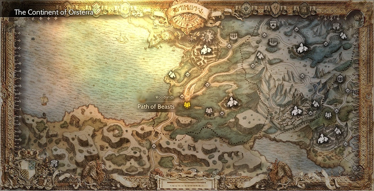 Path of Beasts is an optional dungeon in Octopath Traveler, located on the eastern end of the West S'warkii Trail.