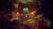 In order to proceed into the ruins, Temenos must guide the beastling Shirlutto to navigate the woods. Doing so permanently alters the layout of the dungeon, transforming its endlessly looping exits into a navigable path.